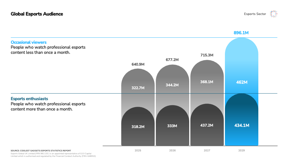 This legal and regulatory notice is issued by Esports Global UK Limited. Esports Global UK Limited is an appointed representative of G10 Capital Ltd which is authorised and regulated by the Financial Conduct Authority, firm reference number 648953. If you do not accept the terms of this disclaimer please do not continue to use or access any pages of this Website. Esports Global UK Limited has its registered office at 3 Aston House, 62-68 Oak End Way, Gerrards Cross, Buckinghamshire, England, SL9 8FU, and is registered in England and Wales No 13793330
